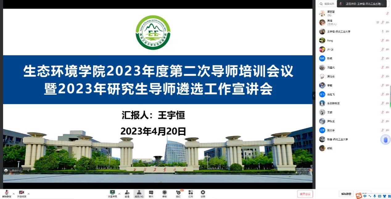 召开2023年度第二次导师培训会议暨2023年研究生导师遴选工作宣讲会。本次会议采用线上的方式进行,会议由副院长王宇恒主持,全体研究生导师参加了本次会议。