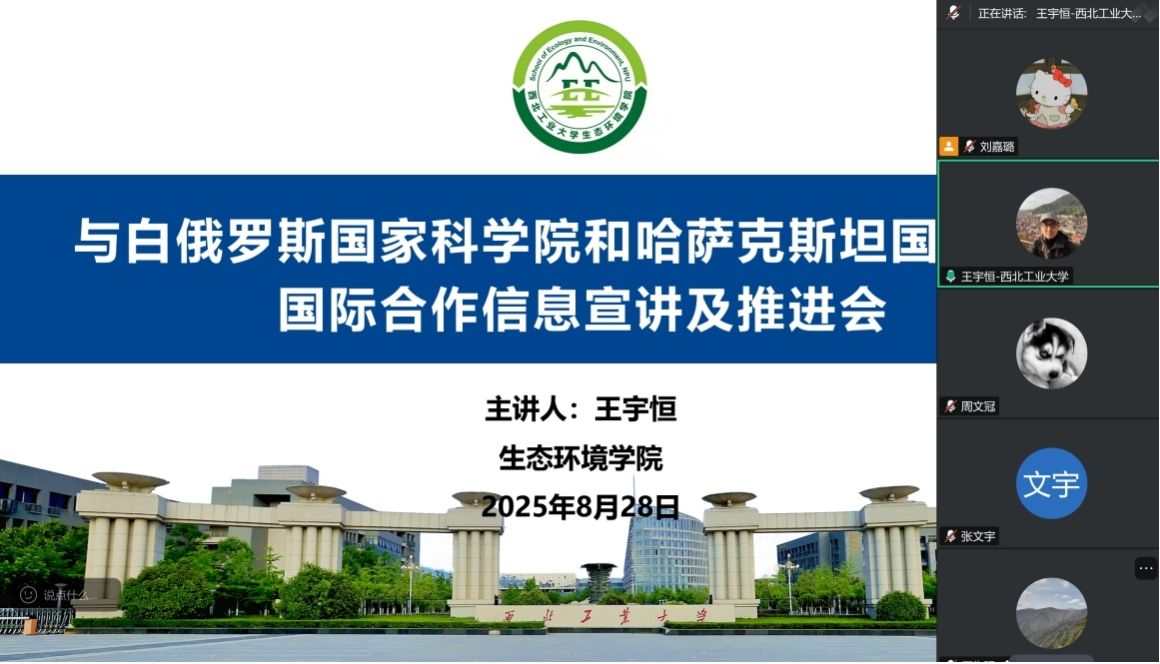 在学校重点布局与白俄罗斯国家科学院和哈萨克斯坦国立大学合作的框架下,为切实推进实质性合作,拓展学院教师科研合作资源和机会,2025年8月28日上午,学院召开与白俄罗斯国家科学院和哈萨克斯坦国立大学国际合作信息宣讲及推进会线上会议。此次会议由学院副院长王宇恒主讲,学院十余名具有国际合作经验和意愿的教职工参会。