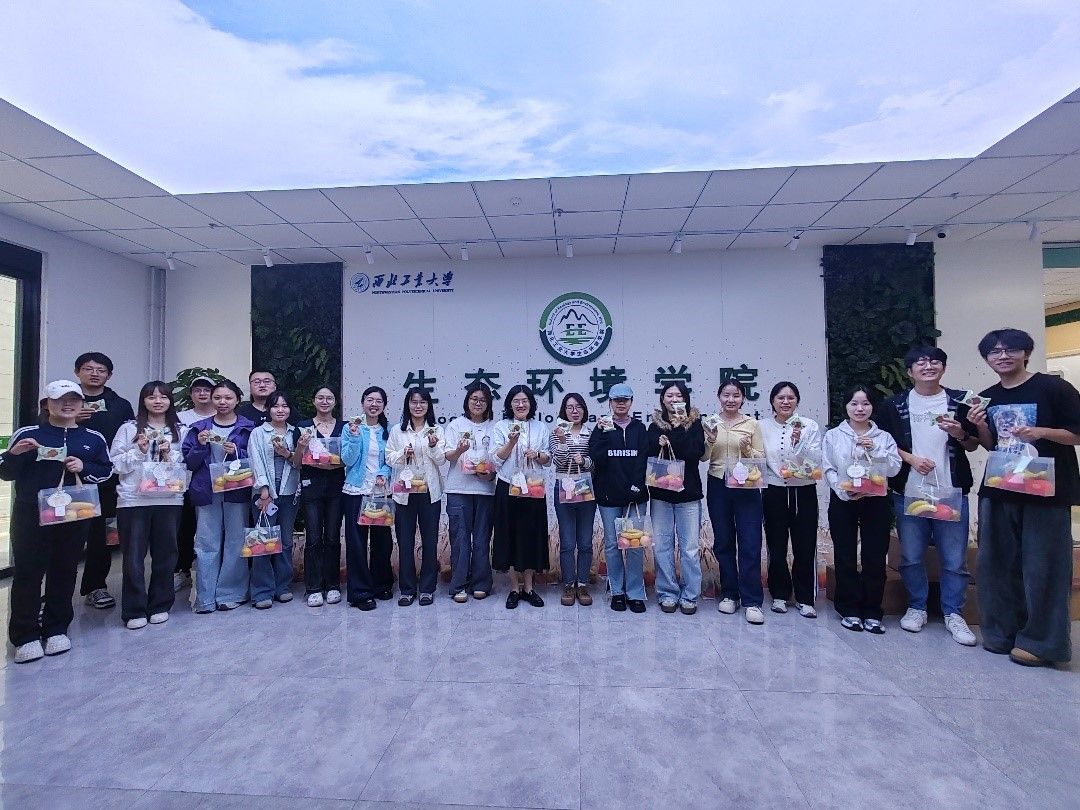 会后,学院为同学们发放了学校和学院精心准备的月饼、水果等“双节”礼品。