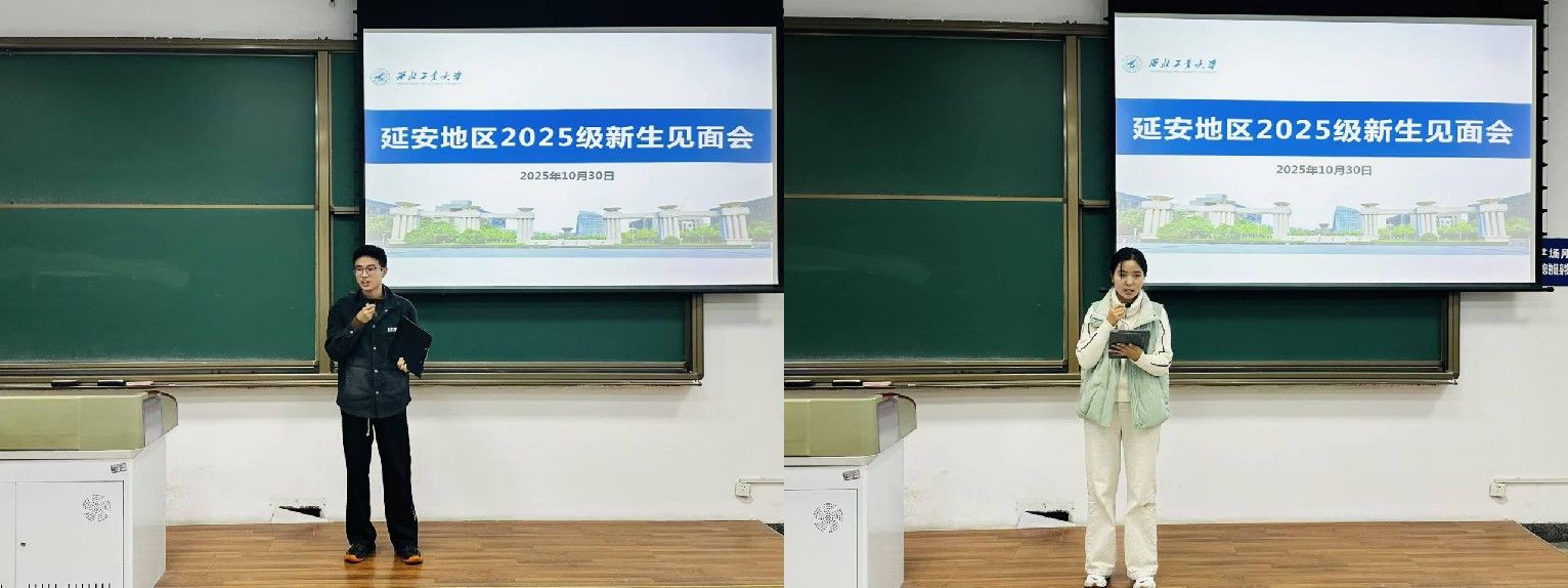 新生代表教育实验学院/未来技术学院程子腾、管理学院张隽宁先后发言。两人分别表达了对大学生活的憧憬与期待,表示将传承延安红色基因,以饱满热情投入学习,积极参与校园活动,努力成为兼具专业素养与责任担当的工大学子,言语间尽显新生朝气。