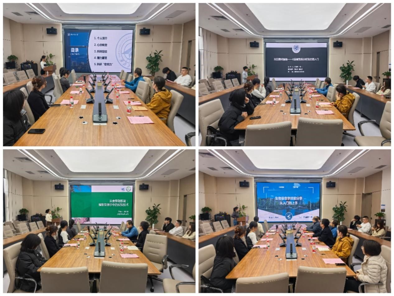 在经验分享环节,四位优秀研究生结合自身实践,从不同角度展示了个人科研及生活成长路径。李悦以《从0到1的科研进阶:心态、定位、效能与表达》为题,强调心态调整与学术表达的重要性;冯如亮聚焦R语言数据分析与绘图入门,为初学者破解技术畏难情绪;徐佳慧系统梳理植物生物学实验技术,并分享实验经历以及高水平论文发表经验;赵蕾则从生物信息学入门实践出发,探讨技能提升与前沿研究的结合。朋辈代表的务实分享,为在场研究生提供了可借鉴的成长范本。