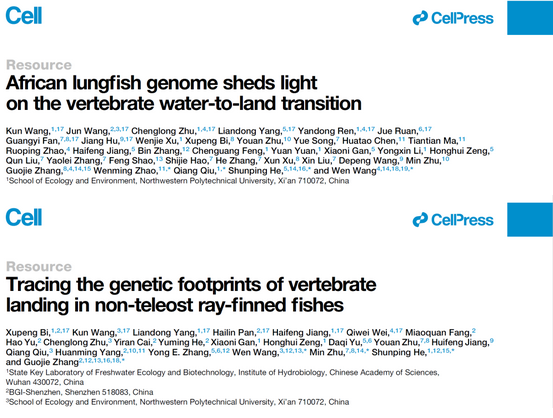 北京时间2021年2月5日凌晨,国际著名学术刊物Cell在线发表了 日韩无码 联合国内外合作者完成的题目分别为“African lungfish genome sheds light on the vertebrate water-to-land transition”“Tracing the genetic footprints of vertebrate landing in non-teleost ray-finned fishes”两篇研究论文。