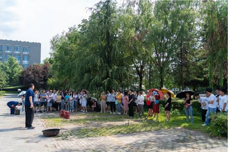 演练时,在保卫处消防科老师们的指导下,学院师生有序从报告厅撤离,到达灭火演练现场。师生们认真学习灭火器材的使用方法,并模拟火灾现场逐一进行了灭火器的实际操作练习。