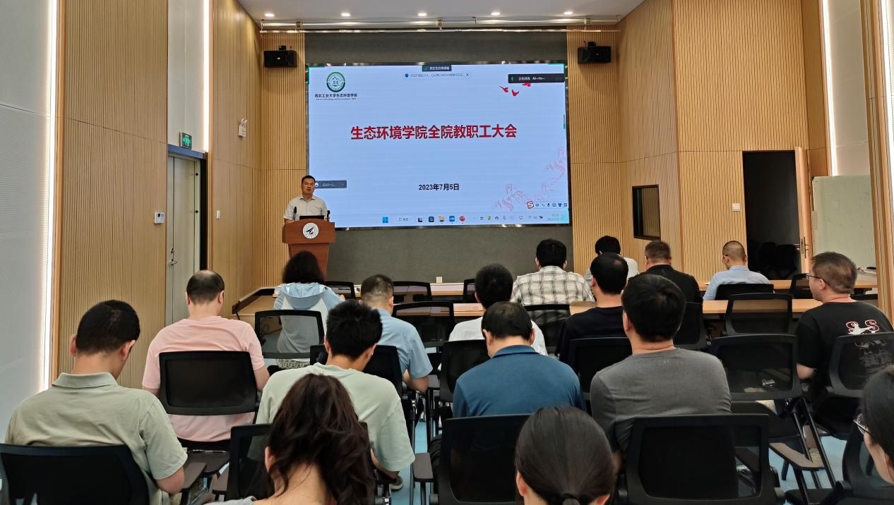 召开全体教职工大会。学院领导班子成员、全体专任教师、博士后和管理人员参加了会议。