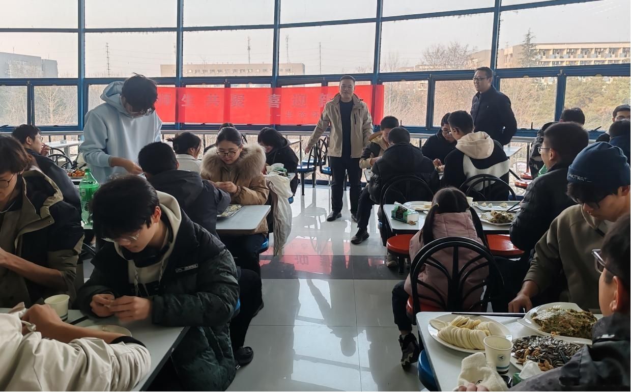 一元复始,万象更新。为庆祝2024公历新年到来,12月31日下午,学院于星天苑南餐二楼正禾新苑餐厅开展了“师生共聚,喜迎新年”包饺子活动。学院党总支副书记(主持工作)段利兵、党总支副书记张永鑫、班主任宋建潇、贾仕宏、辅导员陈帆、学工秘书江晓墩以及学院全体本科生和部分研究生参加了活动。