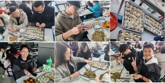 师生欢聚一堂,共度佳节。大家围在一起,开启了包饺子之旅,新鲜的馅料被包进薄薄的面皮里,每一个饺子里都蕴藏着满满的心意和祝福。大家手法不同,包出的饺子形态各异,但都饱满紧实、味道鲜美,大家品尝着这份“家”的味道,内心充斥着满足与幸福。