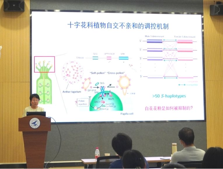 段巧红教授从我国目前蔬菜种子依赖价格高昂的进口现状谈起,提出发展蔬菜育种理论和技术应用研究有助于提高我国种业竞争力。并围绕十字花科植物自交不亲和的调控机制展开讲述,进一步提出自交不亲和是大白菜重要的育种技术,从杂交组合配置、生产F1代杂交种进行详细的讲解。