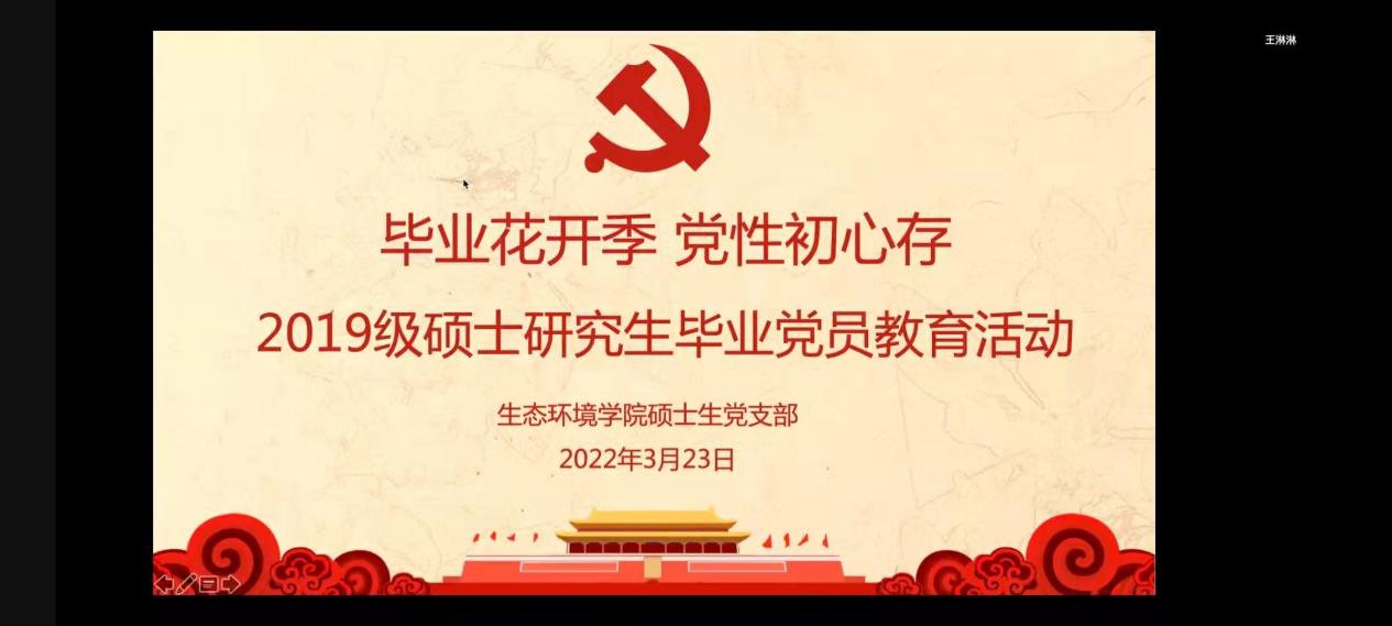 硕士研究生党支部于2022年3月23日举办以“毕业花开季,党性初心存”为主题的2019级硕士研究生毕业党员教育活动。受疫情的影响,本次活动以线上视频会议方式进行。