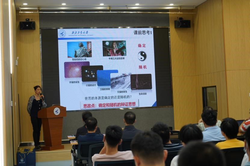学院邀请陕西省一流课程负责人、全国高校青年教师教学竞赛一等奖获得者、数学与统计学院副院长都琳教授为全体教师现场开展《概率论与数理统计》课程思政示范观摩课,并作《坚守育人初心,不负青春韶华——新时代高校教师的教学发展与创新》专题辅导报告,都琳教授生动诠释了如何将课程思政有机融入学科专业课程教学,同时以“课堂为基—教研为要—育人为本”为主线强调青年教师要把立德树人作为价值追求,真正成为学生的“大先生”。