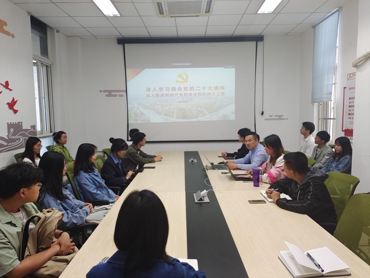 党总支副书记(主持工作)段利兵进行了党的二十大精神宣讲,从党的二十大的重大意义、大会主题、过去五年的工作和新时代十年伟大变革的重大意义、习近平新时代中国特色社会主义思想的世界观和方法论等九个方面进行了解读,重点阐释了“深入推进新时代党的建设新的伟大工程”的内涵和要求,提出青年学生要继续深入学习贯彻习近平新时代中国特色社会主义思想和党的二十大精神,埋头苦干、奋勇前进,以更加昂扬的精神状态、务实的工作作风向着新的奋斗目标出发。