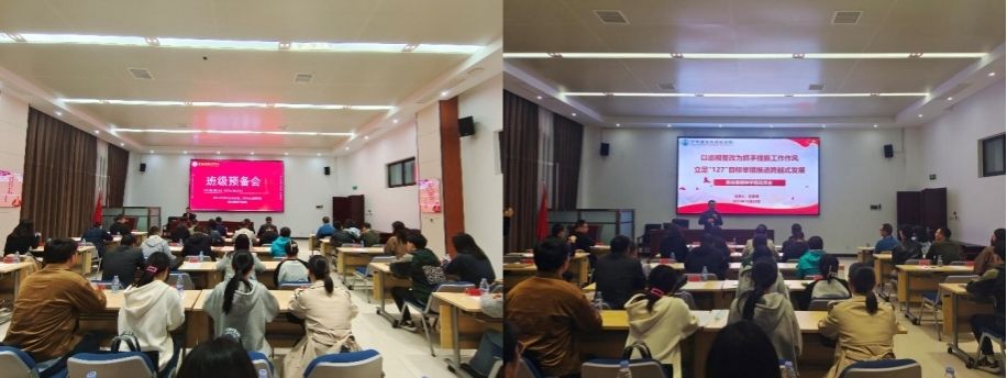党总支副书记(主持工作)段利兵主持会议。张连民对大家的到来表示欢迎,希望通过此次学习,各位学员能够全面了解焦裕禄事迹,学习和践行焦裕禄精神。巨维博作动员讲话,要求全体师生要认真学习传承焦裕禄精神,用本次学习培训的成效助推两个学院高质量发展。随后张连民为两个学院分别授予班旗。仪式结束后,由焦裕禄干部学院张冲老师讲授了《焦裕禄在兰考的475天》专题课程,全面系统介绍了焦裕禄临危受命赴兰考、执政为民除三害、鞠躬尽瘁留英名的英雄事迹。