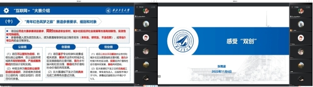 活动采用线上与线下结合的方式开始,邀请了学院在 “互联网+”和“三航杯”竞赛中获奖的张雨涵同学和杨惠淳同学为大家分享他们团队背后的“双创故事”,内容十分精彩。张雨涵介绍了国家对“双创”大赛的期望和要求以及参赛项目的选题,并结合自己参加“青年红色筑梦之旅”赛道谈一些感悟;杨惠淳讲述了他的研究课题与双创课题结合的故事,分享了他在参加第八届中国国际“互联网+”大学生创新创业大赛和 日韩无码 第二十届“三航杯”大学生课外学术科技作品竞赛的一些感悟。